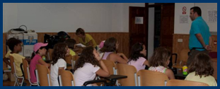 Estoy agotada, ya estoy en la cama, se me cierran los ojos mientras escribo, y... llego a la conclusión de que he pasado un día magnifico entre vosotros, sintiéndome como una niña más, disfrutando y viviendo con cada uno de ellos sus experiencias. Qué mejor manera que expresarme que escribiendo en mi diario un día con todos vosotros... Y sobre todo, como bien me hacen saber los organizadores del campamento, DIVIRTIÉNDOME, que es uno de los principales objetivos del campamento!