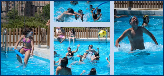 Hacía mucho calor y hemos estado un rato en la piscina antes de comer, hemos jugado con los monitores al balón dentro del agua, el tiempo se ha pasado muy rápido y enseguida la comida nos esperaba, así que otra vez a la sala de autocontrol y ¡¡a comer!!