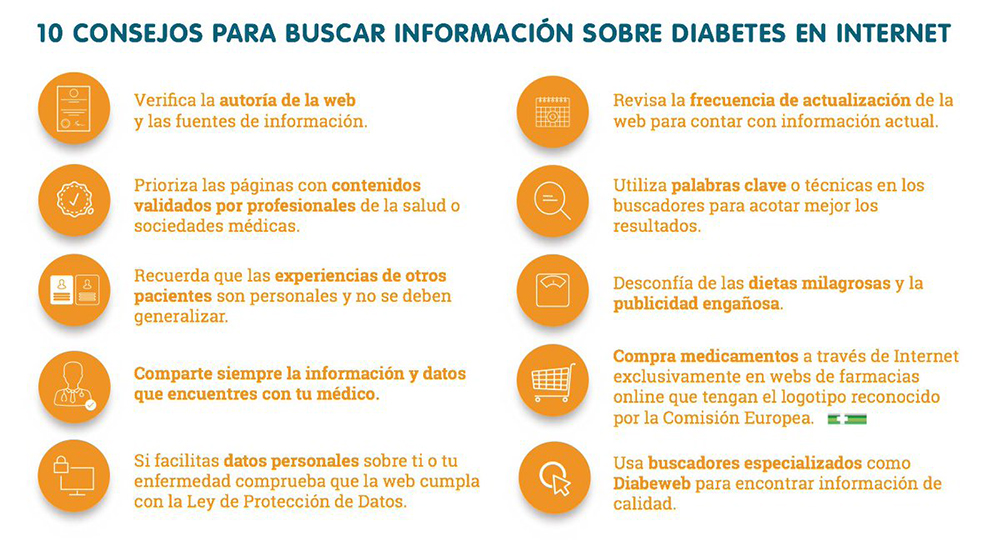 Decálogo de consejos de DiabeWeb para buscar información sobre diabetes en internet