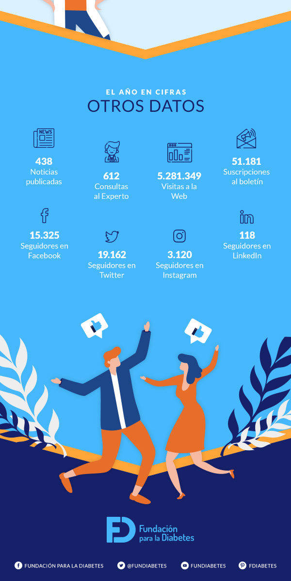 Infografía con la memoria de actividades y campañas llevadas a cabo por la Fundación para la Salud Novo Nordisk durante el año 2019.