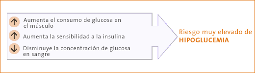 El ejercicio aumenta el consumo de glucosa por el músculo y hace que disminuya la glucemia mientras éste se realiza, pero también aumenta el riesgo de hipoglucemia en las horas sucesivas, y hasta 18 horas después, sobre todo en los ejercicios intensos no habituales, ya que aumenta la sensibilidad a la insulina.