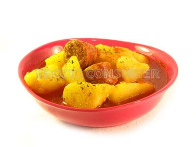 Las patatas guisadas son un modo diferente de poder consumir estos populares tubérculos, ya que en la mayor parte de los casos, se cocinan fritas o en puré. Además las patatas normalmente sirven como acompañamiento o guarnición de otros alimentos, sin embargo en este caso constituyen el ingrediente principal de la receta. Las patatas son ricas en hidratos de carbono complejos, mientras que el chorizo y la cebolla, sus principales acompañantes, son fuente de grasas y vitaminas y minerales, respectivamente.
