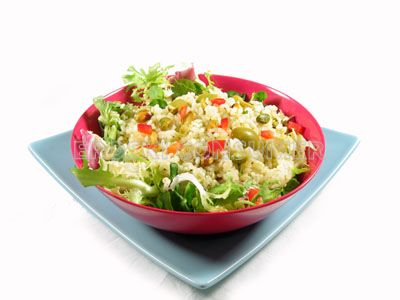 Ensalada verde de arroz con aceitunas y pistachos
