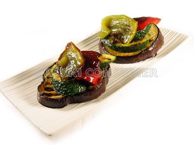 Untamos ligeramente las verduras con un pincel mojado en aceite de oliva y las vamos colocando en la parrilla bien caliente.