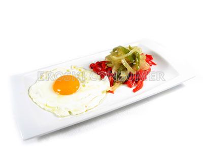 El huevo se caracteriza por ser el alimento que contiene las proteínas más completas y de mayor valor biológico. Para que el contenido calórico del plato no aumente, se puede cocinar el huevo en vez de frito a la plancha, resultando también así muy sabroso. En este caso al acompañarlo con una guarnición de pimientos rojos, se consigue enriquecer el plato en cuanto al contenido en vitaminas, minerales y sustancias antioxidantes. En concreto, los pimientos se caracterizan por ser una buena fuente de vitamina C, que supera con creces a la presente en los cítricos o en las fresas. En cuanto a las cebollas, éstas aportan fibra y abundantes compuestos antioxidantes a los que deben sus propiedades beneficiosas para la salud. Este plato puede constituir una cena muy saludable y nutritiva para cualquier persona, siempre que no presente niveles altos de triglicéridos en sangre o que tenga problemas digestivos. Además, acompañar a los huevos con una guarnición de verduras, es un buen modo de acostumbrar a los más pequeños a que consuman estos saludables alimentos.
