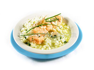 En esta receta están representados varios de los alimentos que componen la dieta mediterránea como son los cereales, en este caso el arroz, el pescado azul, las verduras y el aceite de oliva. Los hidratos de carbono del arroz nos proporcionan una buena cantidad de energía pero con un contenido mínimo en grasa. Las proteínas de alto valor biológico presentes en el salmón completan el valor nutricional del plato, que puede tomarse como plato principal en compañía de una ensalada y una pieza de fruta para asegurar la ingesta de fibra, necesaria para regular el tránsito intestinal. El salmón como pescado azul destaca por su riqueza en grasa omega 3, que disminuye el riesgo de padecer enfermedades cardiovasculares al incidir positivamente sobre el nivel de colesterol de la sangre y la formación de trombos. Aporta además minerales como potasio, fósforo y yodo y vitamina D. El ajo y la cebolla no pueden faltar en un buen guiso mediterráneo, al que aportan un sabor delicioso y enriquecen en sustancias antioxidantes. Los pimientos, como fuente de vitamina C, contribuyen a disminuir las infecciones al estimular el sistema de defensas del organismo. Los ácidos grasos monoinsaturados del aceite de oliva hacen todavía más saludable este plato, ya que ayudan a prevenir las enfermedades cardiovasculares.