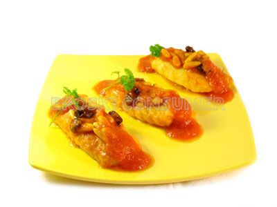 El pargo es un pescado que pertenece a la gran familia de los pescados azules, y como tal, destaca por su contenido en ácidos grasos omega-3, que se consideran protectores de los trastornos circulatorios. Los expertos en nutrición recomiendan incrementar el consumo de pescado azul. A la hora de consumir un alimento, por muy saludable que éste sea, se ha de tener en cuenta la forma de preparación del mismo. En este caso, la técnica culinaria que se emplea para elaborar el pescado es sencilla, no añade mucha cantidad de aceite, por lo que no aumenta excesivamente el valor energético. Los frutos secos (pasas y piñones), son los alimentos más energéticos, le dan un toque diferente al plato, aunque también aumentan las calorías, si bien, la cantidad que indica la receta no es tanta, como para que la receta no la puedan incluir las personas que siguen una dieta de adelgazamiento. La salsa de tomate potencia el sabor del plato, en parte enmascara el sabor del pescado, y lo enriquece en minerales, vitaminas y sustancias antioxidantes como licopeno (del tomate). En conjunto, el plato puede resultar indigesto para quienes padecen de estómago delicado, y dada la mezcla de sabores (dulces de los frutos secos, ligeramente ácido de la salsa de tomate, con un toque amargo de las alcaparras), se puede prescindir de la sal (las alcaparras son ligeramente saladas), con el fin de adecuar la receta para aquellas personas que han de controlar el sodio de la dieta por problemas de salud.