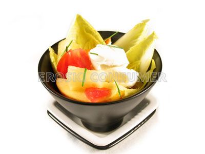Las ensaladas son platos muy adecuados por su valor nutritivo durante todo el año, y no sólo en verano o en épocas de calor. Las hortalizas y verduras que se consumen crudas, conservan mejor su contenido de vitaminas y minerales. Son platos adecuados para todas las edades y, siempre y cuando no nos excedamos con la cantidad de aceite, en especial, para quienes deben llevar a cabo una dieta de control de peso y también para quienes sufren de estreñimiento, por su extraordinario aporte de fibra. Las ensaladas constituyen un plato básico de la dieta mediterránea, cuyo consumo contribuye a reducir el riesgo de enfermedades cardiovasculares, degenerativas e incluso de cáncer. Quienes por motivos de salud deban restringir la cantidad de sal, la pueden sustituir por especias y hierbas aromáticas para realzar su sabor y hacerlas aún más apetecibles. Ligeras y refrescantes, las ensaladas que combinan frutas frescas y hortalizas, enriquecen el plato en nutrientes y matices (sabores, aromas, texturas...), y para las personas que no acostumbran a tomar fruta o que no ingieren la cantidad deseable, son una alternativa para fomentar su consumo. Esta receta, por la combinación de ingredientes, es muy rica en vitaminas como la C, ácido fólico, beta-caroteno o provitamina A, minerales entre los que destaca el potasio, el magnesio, así como sustancias antioxidantes y fibra. El queso fresco enriquece ligeramente en proteínas y calcio esta ensalada mixta, nutrientes ausentes en el resto de ingredientes vegetales. El aceite de oliva, aporta sobre todo ácido oleico; una grasa de tipo monoinstaurado, con reconocidos beneficios para la salud del corazón y de los vasos sanguíneos. Atención, pues a pesar de ser una ensalada contiene hidratos de carbono, especialmente por la inclusión de la fruta.