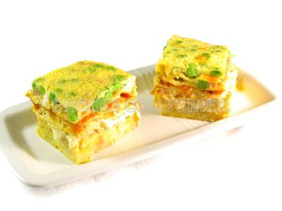 Con los últimos 4 huevos hacemos otra tortilla redonda con el jamón y los guisantes.