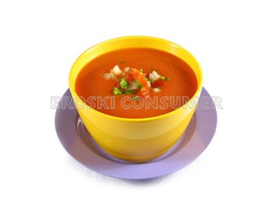El gazpacho es una manera muy apetitosa y refrescante de cuidar la salud en verano. Las hortalizas y las verduras han tenido desde siempre mucha importancia en la alimentación de la población, especialmente en los países del Mediterráneo, donde se da un consumo de estos alimentos superior al de los países del Norte de Europa. Este alto consumo de alimentos vegetales se ha relacionado con una menor incidencia de enfermedades crónicas y degenerativas, gracias a su contenido en fibra, vitaminas y sustancias antioxidantes. El contenido en hidratos de carbono de este gazpacho depende fundamentalmente de la cantidad de pan añadida. Tener en cuenta la cantidad de aceite añadida, así se controlará el total de calorías del plato.