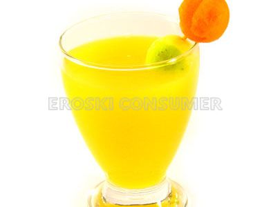 Esta receta se convierte en una forma diferente, rápida y fácil de tomar fruta en cualquier época del año. En este caso se incluye piña, que aunque es una fruta más propia de los meses fríos, tenemos la posibilidad de encontrarla en el mercado prácticamente todo el año. La combinación de estas frutas da como resultado una bebida refrescante y revitalizante por su contenido en vitaminas, minerales y antioxidantes. La manzana destaca sobre el resto de ingredientes por su aporte de fibra; las zanahorias destacan por su contenido en vitamina A (nutriente del sistema de defensas) y la piña es una fruta rica en vitamina C. Todo ello explica que este zumo sea muy útil para reforzar las defensas y enfrentarse mejor a las infecciones y a los resfriados. Destacar que el contenido de hidratos de carbono de esta preparación es algo superior al de un postre habitual en forma de fruta fresca. Esto se debe tener en cuenta para evitar incrementos de la glucemia posterior.