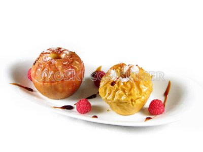 Las manzanas son una de las frutas más consumidas por la población, ya que su presencia en el mercado no varía de una estación a otra. La diversidad de clases y sabores que ofrece esta fruta la convierten en un alimento que puede incluirse en muchas preparaciones, tanto dulces como este postre, como formando parte de ensaladas, salsas y rellenos de carnes. A pesar de que su valor nutricional no es destacable, ya que se compone fundamentalmente de hidratos de carbono en forma de azúcares, y aporta vitaminas y minerales en pequeña cantidad, resulta difícil imaginar las extraordinarias propiedades curativas que hacen de la manzana un alimento medicina. Entre las cualidades que hay que destacar está su capacidad tanto laxante como astringente, es decir, que puede tomarse tanto en caso de estreñimiento como de diarrea. Consumida cruda y con piel ayuda a mejorar el tránsito intestinal, gracias a la fibra insoluble que se encuentra en la piel. Por otro lado, si la consumimos pelada y rallada tiene el efecto contrario en el organismo, gracias a la pectina de la pulpa, que tiene la capacidad de retener agua. Las manzanas asadas resultan indicadas para las personas que deben tomar una dieta blanda, ya que son más digeribles que la pieza de fruta cruda. A pesar de utilizar azúcar como ingrediente, la cantidad utilizada no debe tener influencia sobre los niveles de azúcar en sangre.