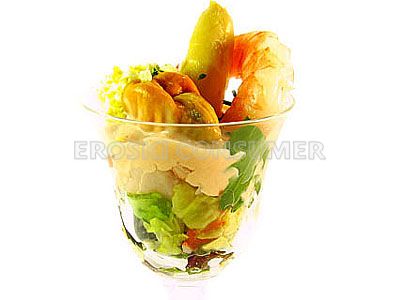 El marisco es sin duda uno de los alimentos más apreciados, pero debido a su elevado coste, sólo podemos saborear estos platos en ocasiones especiales. Este salpicón de frutos del mar permite disfrutar, a un precio razonable, un plato delicioso, nutritivo y moderadamente de bajo contenido en grasas. Tanto los langostinos como los mejillones proporcionan minerales entre los que destacan el yodo, el fósforo y el selenio, además de ser también fuente de calcio. El surimi es un sucedáneo de cangrejo hecho a base de proteínas de pescado, por lo que comparte con él todas las cualidades nutricionales. Por su elevado contenido en purinas, el marisco está contraindicado en personas con hiperuricemia o gota. Las personas que tengan hipertensión deben moderar el consumo de estos alimentos, ya que aportan bastante sodio. Entre los ingredientes que forman parte de esta receta la mayonesa constituye la mayor fuente de grasa, por lo que no se recomienda si se lleva una dieta baja en grasas o hipocalórica. La lechuga y los espárragos dan el toque vegetal, enriqueciendo el plato en vitaminas y fibra, que no debe faltar en una dieta saludable.