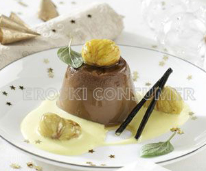 Este es un postre indicado solamente para un típico día de celebración o fiesta especial, pues tanto su contenido en calorías como de hidratos de carbono así lo aconsejan. Es un flan especial, con la base de las castañas y regado con una salsa diferente, en este caso aromatizada con vainilla, la cual incrementa la percepción del sabor dulce en el paladar. El contenido de hidratos de carbono es elevado, por lo que si se desea tomar, se deberá combinar con un primer y segundo plato de muy bajo contenido en hidratos de carbono. Además entre los ingredientes se encuentran también alimentos muy ricos en grasas, especialmente saturadas, a tener en cuenta por aquellas personas que deban controlar las grasas de su alimentación.