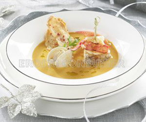 - Souquet de pescado y marisco con brocheta de rape y bogavante