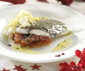 - Lomo de dorada asada con reducción de cava y tomate concassé