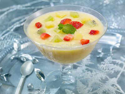 Receta de sorbete de piña con macedonia fría