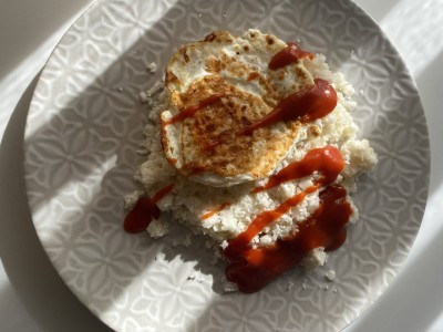 Un arroz a la cubana sin arroz y de temporada! Rapidísimo de preparar, sabroso y saciante. Un buen plato de coliarroz solo nos aporta 0,5 raciones de Hidratos de carbono.