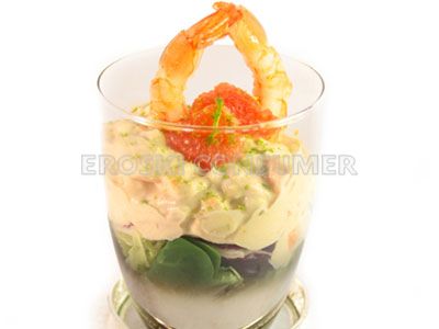 La mezcla tan variada de alimentos que integran la ensaladilla rusa hace que sea un plato muy nutritivo. En este caso se propone como aperitivo, pues a pesar de utilizar una mayonesa baja en grasa, el plato es altamente energético y con un importante contenido en hidratos de carbono, aportado básicamente por las patatas y la zanahoria. Por otro lado, el atún, los langostinos y los huevos aportan la parte proteica, y la mayonesa, enriquece en grasa, colesterol y calorías la receta. No es el aperitivo indicado para quienes tienen que controlar las calorías y la grasa de la dieta, si bien se aligera la receta si se usa poca cantidad de mayonesa.