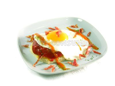 Huevo a la plancha con salsa de tomate, pimientos y paleta ibérica