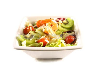 Ensalada que sorprende por la originalidad de sus ingredientes. Tal vez en invierno, cuando menos apetecen las ensaladas y los platos fríos hay que hacer el esfuerzo para inventar ensaladas diferentes y sabrosas que inviten a probarlas. En este caso el contraste de sabores del kiwi con los langostinos hace de esta ensalada un plato delicioso. Nutricionalmente comparte con el resto de ensaladas vegetales su riqueza en fibra, vitaminas y minerales, complementada con las proteínas de los langostinos y muy pocos azúcares que provienen del kiwi.
