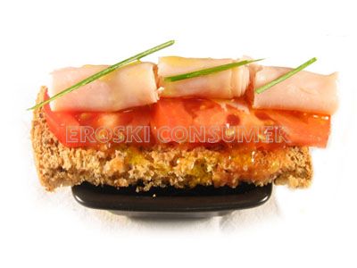 Se puede considerar un saludable aperitivo para calmar el hambre entre horas, y precedido de una ensalada bien sirve como complemento en la cena. Aunque puede entenderse como un aperitivo ligero, contempla en una misma receta alimentos de todos los grupos por lo que están representados casi todos los nutrientes; pan (hidratos de carbono), jamón york (proteínas), tomate (vitaminas, minerales y fibra) y aceite (grasas buenas). Al elegir el pan de semillas, aún aporta más fibra a la dieta, y ayuda a ralentizar ligeramente el paso a la sangre de los hidratos de carbono contenidos en el pan.