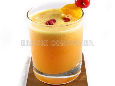 Esta receta es una forma original y refrescante de tomar fruta en verano, porque se aprovecha fruta de temporada en forma de postre ligero y diferente. Las frambuesas y las cerezas son frutas propias de la primavera y el verano y junto con el zumo de naranja constituyen una combinación de frutas muy ricas en vitamina C. Por la riqueza del conjunto en antioxidantes, ácido fólico y potasio, se recomienda para prevenir el riesgo cardiovascular, las enfermedades degenerativas y el cáncer.