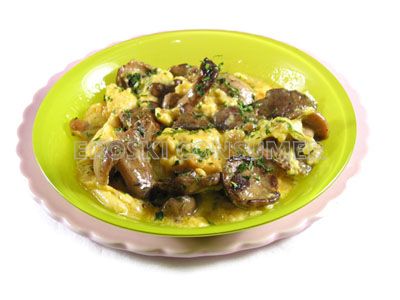 Se salan ligeramente los hongos y agregamos los huevo batidos pero sin espumar.