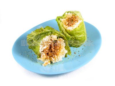 La hoja de berza es una hortaliza que no se suele utilizar para cocinarla rellena, pero gracias a su forma resulta muy apropiada para prepararla de este modo. Se puede rellenar de prácticamente cualquier alimento que se desee, si bien en este caso se ha utilizado como ingrediente principal el arroz, buena fuente de hidratos de carbono complejos, que se acompaña de carne, que aporta proteínas de buena calidad. El relleno se completa con cebolla, zanahoria y salsa de tomate quienes junto a las hojas de berza, hacen que este plato presente un buen contenido de vitaminas y minerales. Si se no se utiliza el arroz como ingrediente, el contenido de hidratos de carbono de la receta sería muy bajo, pudiéndose incluir como un segundo plato.