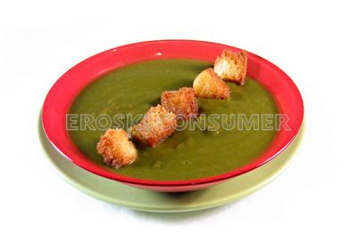 Servimos templado y acompañado de unos panes cortados en forma de cubos y fritos.
