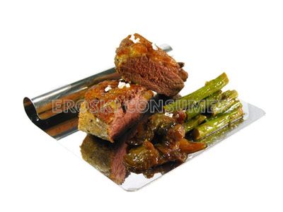 Servimos acompañado de las shitakes y tallos de espárragos salteados.