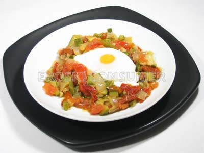 Pisto con huevos escalfados