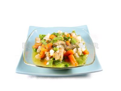 Para reducir el tiempo de elaboración de la receta podemos echar mano de una macedonia de verduras en conserva. De esta manera no tenemos que cortar y cocer las verduras, sólamente rehogarlas ligeramente. Si preferimos cocinar con verduras frescas, utilizaremos la receta original.
