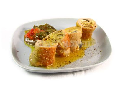 Servimos al instante acompañando los rollos de carne con unas verduras salteadas.
