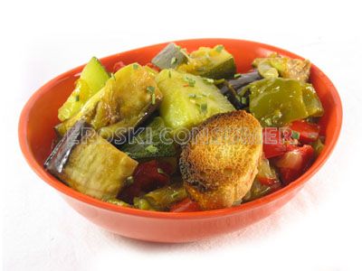 pimientos, cebolla, berenjenas, calabacín y tomate.