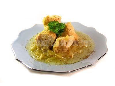 La carne de pavo es una de las de menor contenido graso. Es buena fuente de proteínas de alto valor biológico y su suave sabor y textura, hace que pueda acompañarse de casi cualquier tipo de alimento. En este caso las pechugas se cocinan con cerveza, que además de dar a la carne un sabor muy agradable, va a evitar que se seque. Las pechugas se acompañan de una salsa de cebolla, rica en diferentes vitaminas y minerales. Si se opta por acompañar al plato con diversas verduras cocidas, el contenido en vitaminas, minerales y sustancias antioxidantes, se verá incrementado.