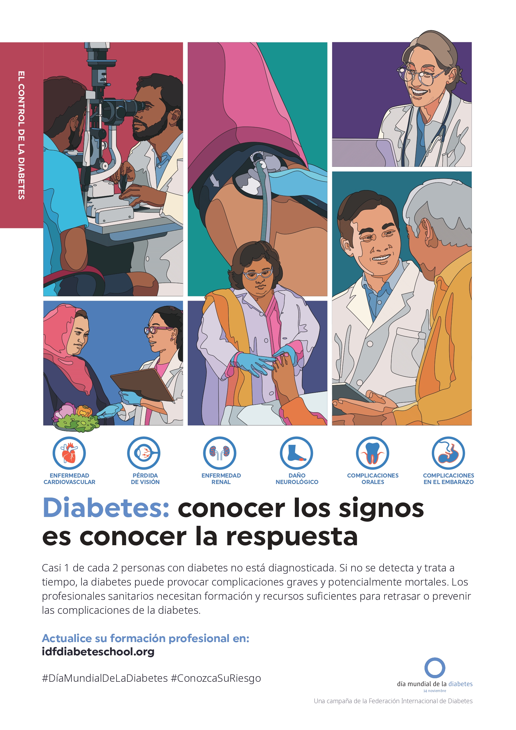 El número de personas afectadas por la diabetes no muestra signos de disminución. Los profesionales de la salud deben saber detectar y diagnosticar la enfermedad de forma precoz y proporcionar la mejor atención posible. Las personas que viven con diabetes necesitan tener acceso a una educación continua para entender su enfermedad y llevar a la práctica los autocuidados diarios esenciales para mantenerse sanos y evitar complicaciones.