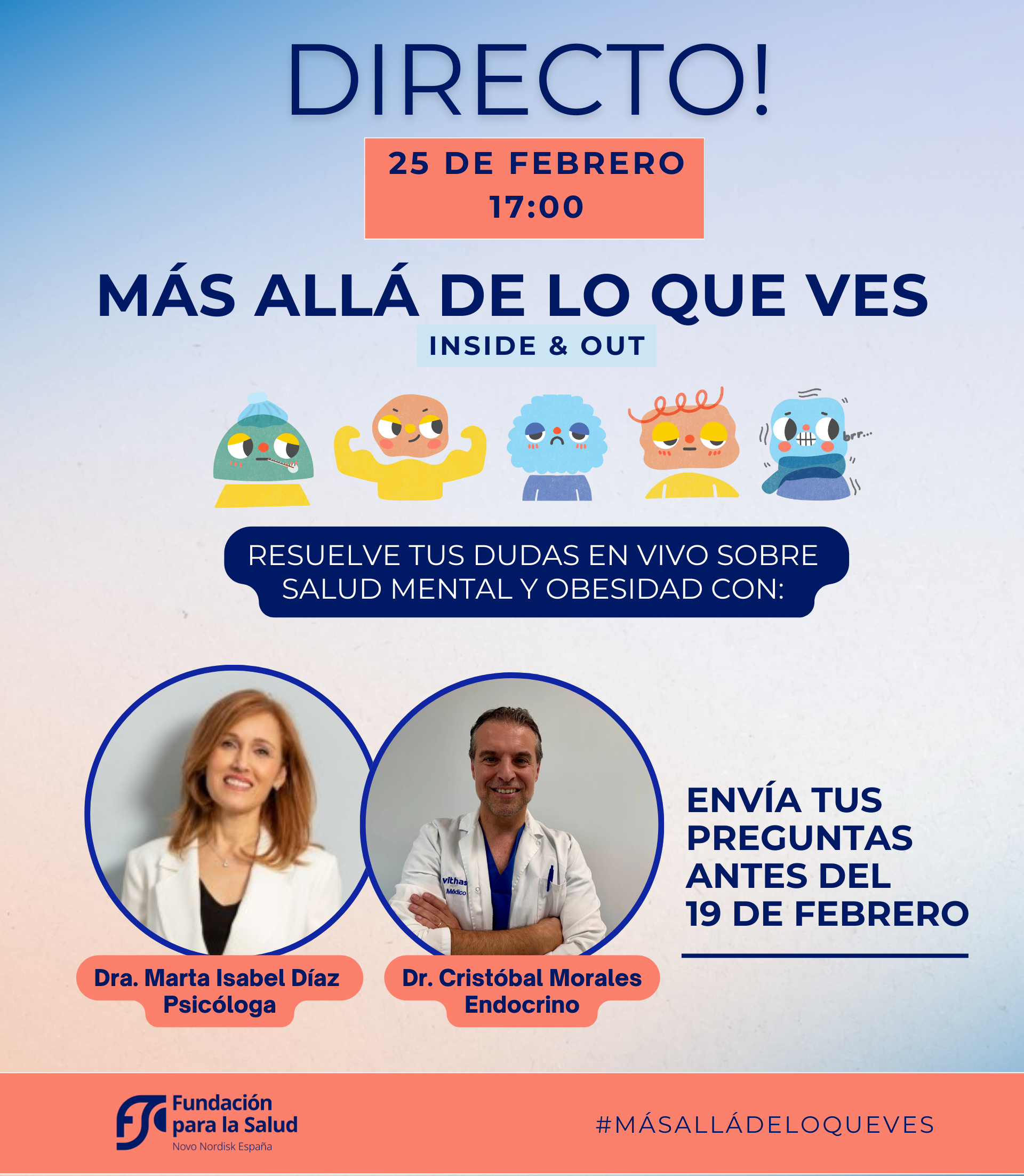 Para enriquecer esta conversación, el 25 de febrero a las 17h, realizaremos un directo en Instagram con la participación de la Dra. Marta Isabel Díaz (Psicología Clínica) y el Dr. Cristóbal Morales (Endocrinología y Nutrición). Ellos estarán allí para responder en vivo a todas tus inquietudes, brindando su conocimiento y experiencia sobre este tema tan relevante.