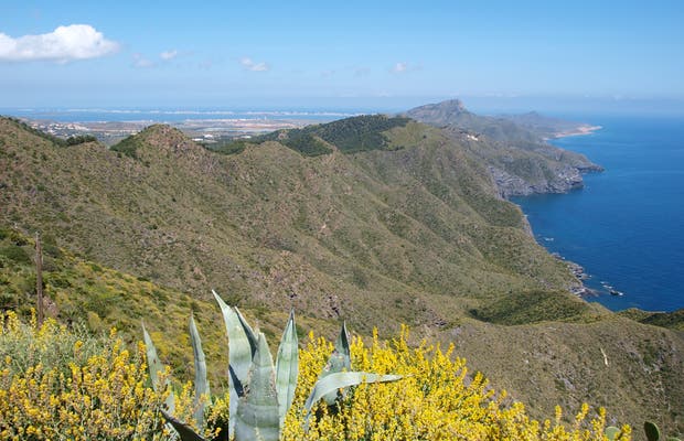 3. El parque de Calblanque, Monte de las Cenizas y Peña del Águila se encuentra situado en el sector oriental de la Sierra minera de Cartagena-La Unión, cerca del Mar Menor y Cabo de Palos, entre los municipios de Cartagena y La Unión en la Región de Murcia, en España.​ Casi la totalidad de la superficie del parque pertenece al municipio de Cartagena. Comenzaremos la ruta hacia el interior del parque, pasaremos por una de las viviendas mas antiguas aunque reconstruida pero que conserva un pozo de agua que la familia que habitaba esa vivienda construyo hace ya cinco generaciones, Seguiremos por el interior que nos llevará hasta Calareona y nos va dejando ver todo el mar menor y la manga; tomaremos el sendero GR para ir costeando viendo los acantilados antiguas bocas de minas y los escombros y desechos mineros que fueron arrojados, todo esto junto va creando un único paisaje costero hasta llegar al mirador de Calblanque.