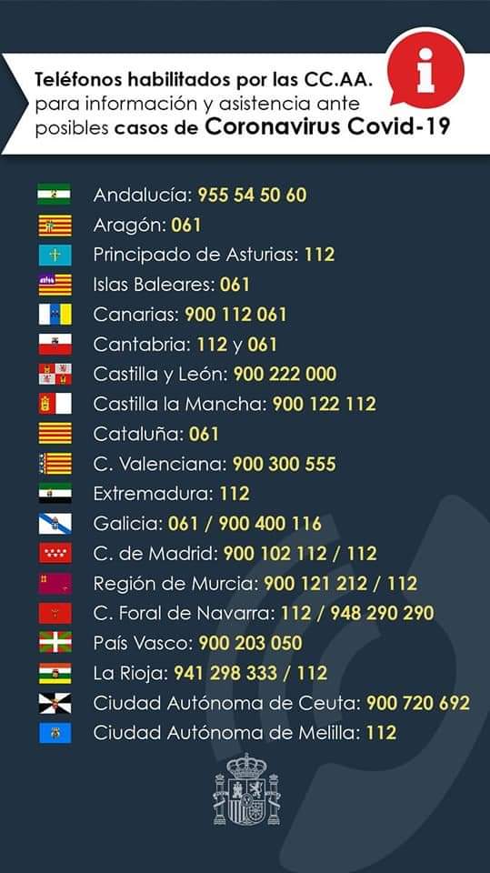 Aquí puedes acceder al listado de teléfonos por Comunidad Autónoma.