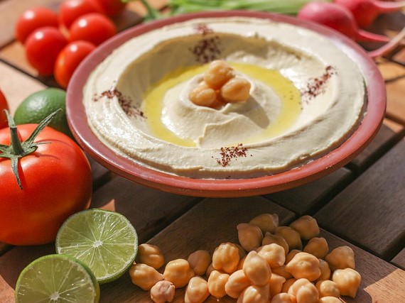 Es una receta muy antigua y muy común en países árabes y del Oriente Medio. Se trata de una pasta de garbanzos, típica de la cocina árabe, aderezada generalmente con aceite de oliva, zumo de limón, crema de sésamo (tahina o tahini) y ajo. Existen variedades combinadas con aceituna, pimiento, guindilla o tomate entre otras.