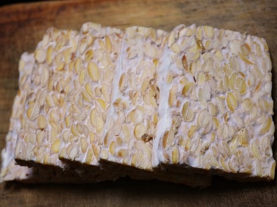 El tempeh se elabora fermentando la soja con hojas de plátanos y posteriormente se condimenta con los aderezos deseados. Su textura crujiente y un sabor más marcado lo diferencian del suave tofu, pese a que ambos están elaborados con la misma legumbre.