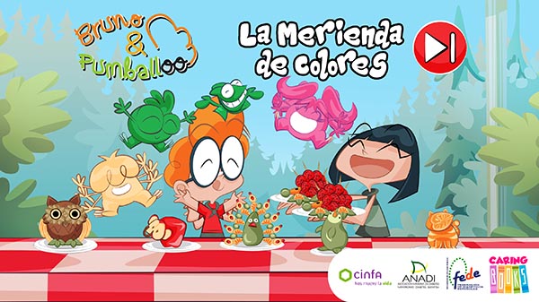 La historia, titulada ‘Bruno & Pumballoo: La merienda de colores’, está protagonizada por los personajes ya habituales de estos relatos animados: un niño que tiene una alergia alimentaria, un camaleón, y unos seres mágicos que ayudan a cualquier pequeño con alguna enfermedad o circunstancia especial.