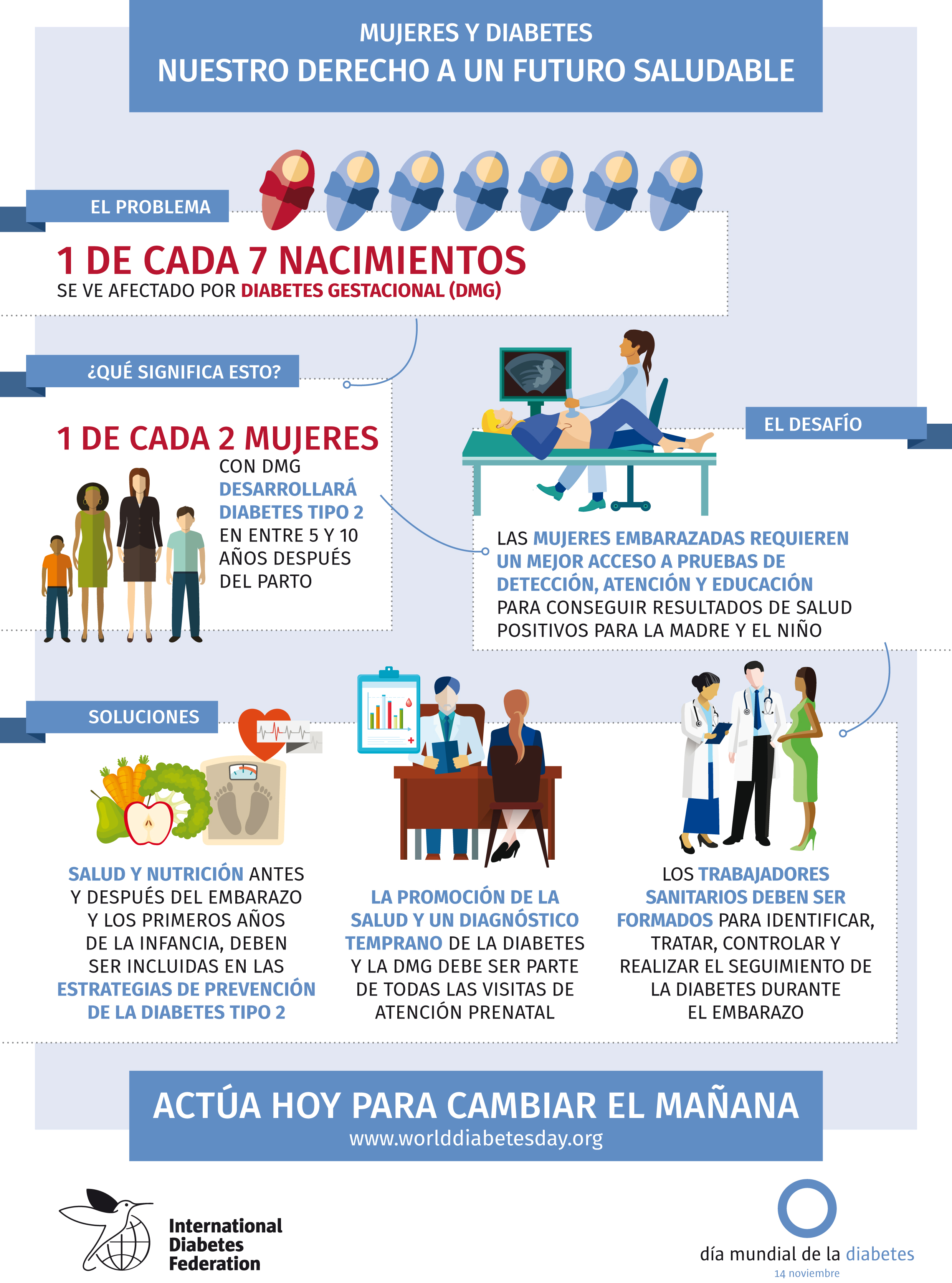 Una infografía que subraya la prevalencia de la diabetes gestacional y la amenaza que representa para la salud de la madre y el niño. Difundida por la IDF (International Diabetes Federation) con motivo del Día Mundial de la Diabetes 2017.