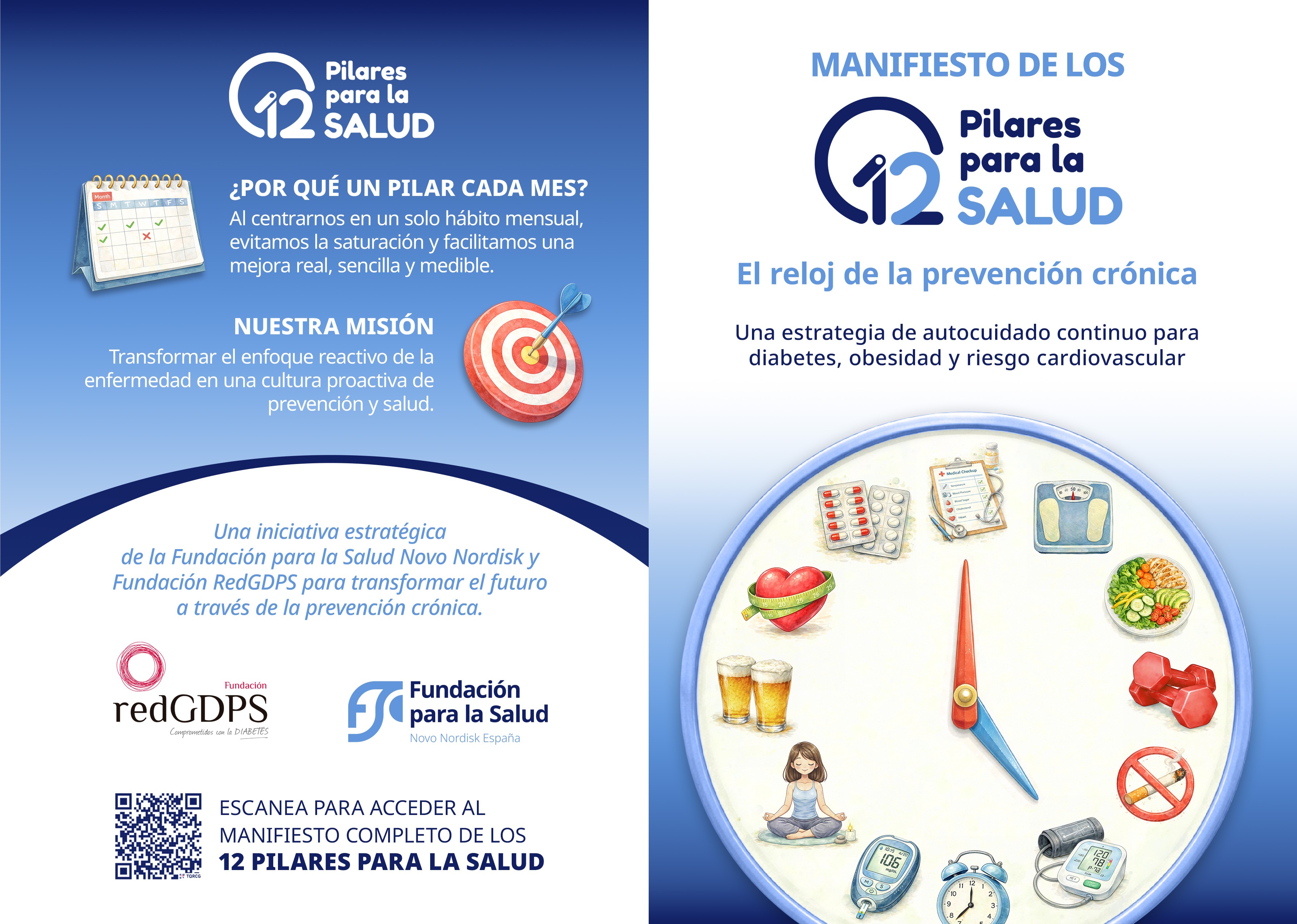 El proyecto “Los 12 pilares de la prevención y cuidados en enfermedades crónicas” es una iniciativa estratégica nacida de la colaboración entre la Fundación para la Salud Novo Nordisk y la Fundación RedGDPS. Su misión es clara: transformar el enfoque reactivo de la salud crónica en una cultura proactiva de prevención y autocuidado.