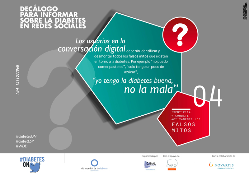 Los usuarios en la conversación digital deberán identificar y desmontar todos los falsos mitos que existen en torno a la diabetes. Por ejemplo “no puedo comer pasteles”, “sólo tengo un poco de azúcar”, “yo tengo la diabetes buena, no la mala”, etc…