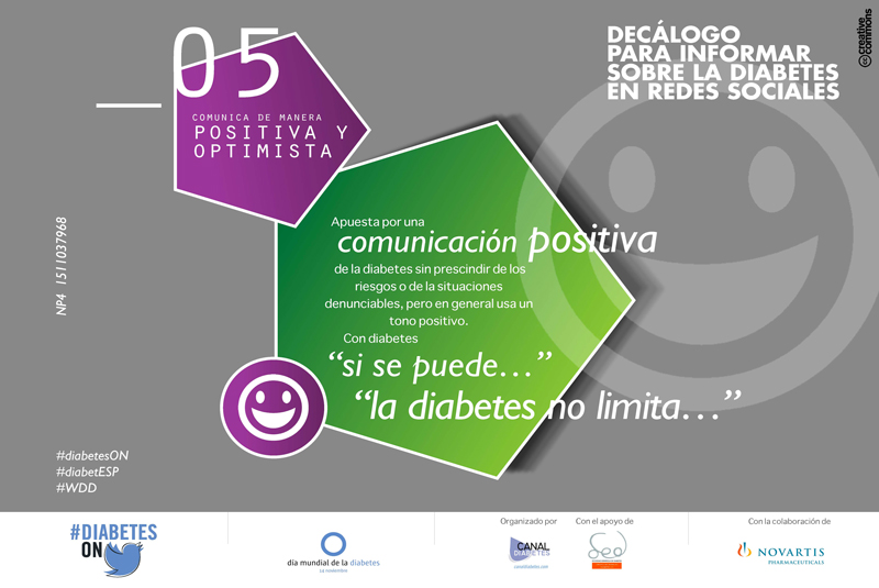 Apostar por una comunicación positiva de la diabetes sin prescindir de los riesgos o de la situaciones denunciables, pero en general el tono debe ser en positivo. Con diabetes “sí se puede…” “la diabetes no limita….”
