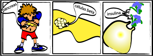 Muchas de las diversas funciones que realiza el cuerpo se encuentran controladas por hormonas. La insulina es una hormona que se produce en el páncreas dentro de unas células especiales llamadas células beta, que se encuentran en una parte concreta del páncreas denominada “islotes de Langherhans”. La insulina actúa como una llave que “abre la puerta” de las diferentes células del cuerpo para que la glucosa entre en ellas y así las células tengan energía para poder realizar sus funciones. La mayoría de las células del cuerpo necesitan insulina para que la glucosa entre y sirva de fuente de energía. No obstante, hay algunas células que pueden permitir la entrada de glucosa para obtener energía sin necesidad de insulina, es el caso de: células del cerebro, fibras nerviosas, retina, riñones, glándulas suprarrenales, vasos sanguíneos, mucosa intestinal y glóbulos rojos.