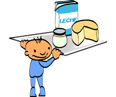 - La leche: tiene grandes propiedades en aporte de nutrientes. En los recién nacidos es el alimento básico. Un alto porcentaje de su composición es agua. En cuanto a nutrientes, está compuesto por hidratos de carbono principalmente y, en menor medida, proteínas y grasas (en la misma proporción salvo si la leche es semidesnatada o desnatada). Es rica en vitaminas y minerales, sobre todo, vitamina A y Calcio.
