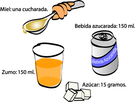 Una vez que se ha confirmado la hipoglucemia hay que ingerir alimentos que contengan carbohidratos de absorción rápida, que elevan rápidamente la glucosa en sangre. Lo recomendable es ingerir: